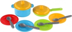 De set van kleurrijk kunststof servies biedt de perfecte gelegenheid voor kinderspel en stimuleert hun creativiteit in de keuken. Deze set is perfect voor het ondersteunen van verbeelding en het ontwikkelen van vaardigheden via rollenspel.