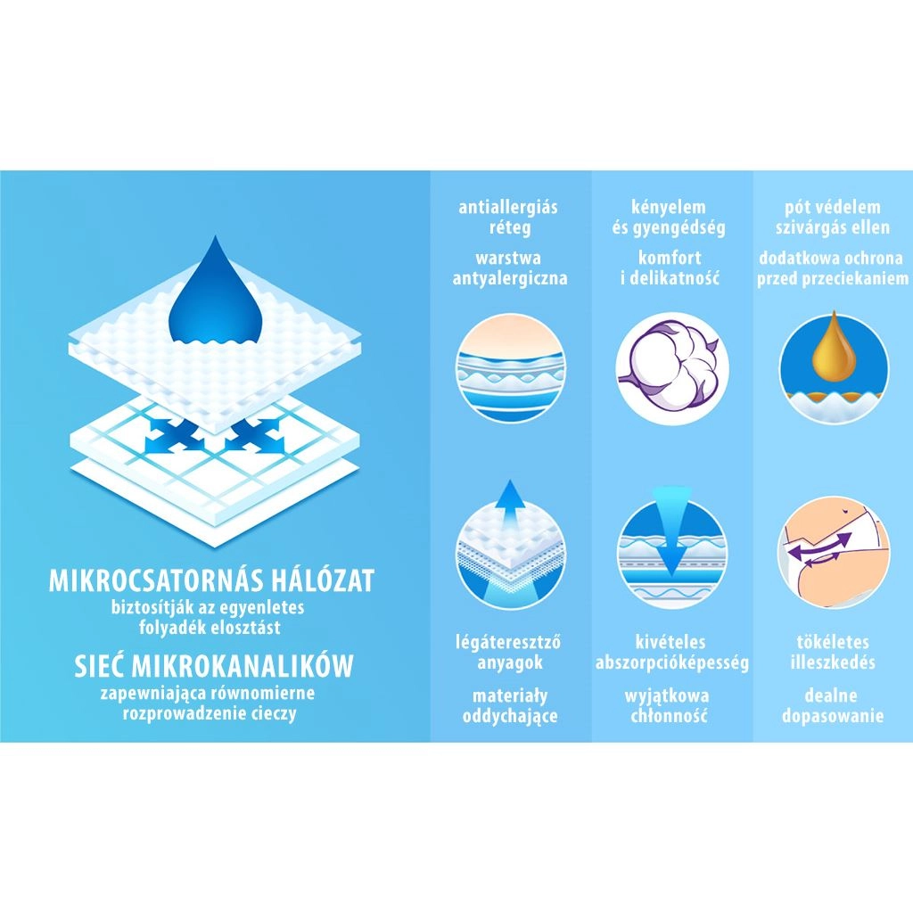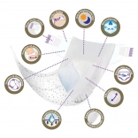 De extra zachte interne 3D-laag en de brede, zachte voorband garanderen comfortabel dragen, ook bij langer gebruik. De 3D-klittenbandsluiting en elastische manchetten zorgen voor perfecte aansluitbaarheid en bewegingsvrijheid, terwijl speciale zachte anti-lekrandjes zelfs zeer actieve kinderen beschermen.