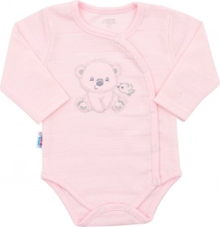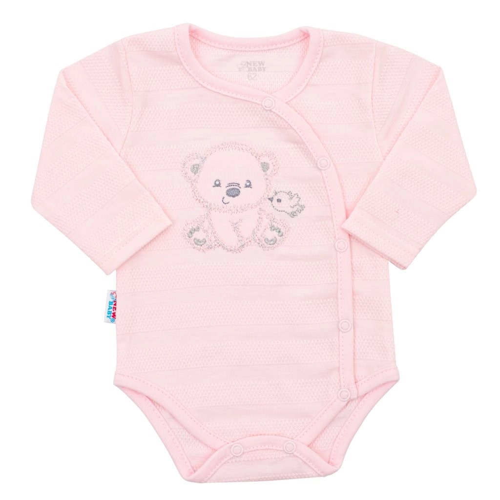 Schattige en praktische 4-delige babycadeauset NEW BABY Sweet Bear in het roze, ideaal voor in het ziekenhuis en de eerste maanden. Bevat een geheel doorknoopbare romper met lange mouwen, boxpakje, jasje en een strikmutsje. Heerlijk zachte 100% katoen, gemakkelijk aan te trekken met drukknoopjes en lieve motiefjes van een beer en een vogeltje voor comfort en stijl voor je baby.