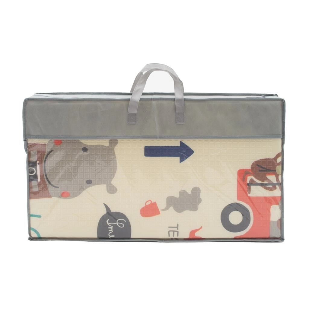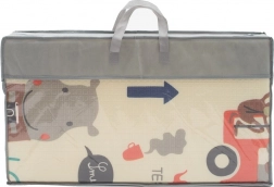 Praktische en universele speelmat voor kinderen en volwassenen met afmetingen 200 × 150 cm. Dankzij het dubbelzijdige motief en het XPE-materiaal is hij zacht, thermisch en akoestisch isolerend, niet-absorberend, waterdicht en makkelijk afwasbaar. Ideaal als mat voor spelen, oefeningen, picknicks en op het strand. De EN71-certificering garandeert hoge veiligheid en een samenstelling zonder ftalaten.