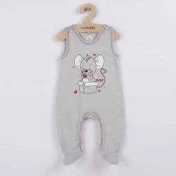De praktische drukknoopsluiting over de volledige lengte van het jasje en op de schouder en tussen de beentjes van het boxpakje maakt dagelijks aankleden en verschonen aanzienlijk eenvoudiger. Het setje maakt deel uit van de nieuwe, speelse collectie Mouse van het Tsjechische merk New Baby.
