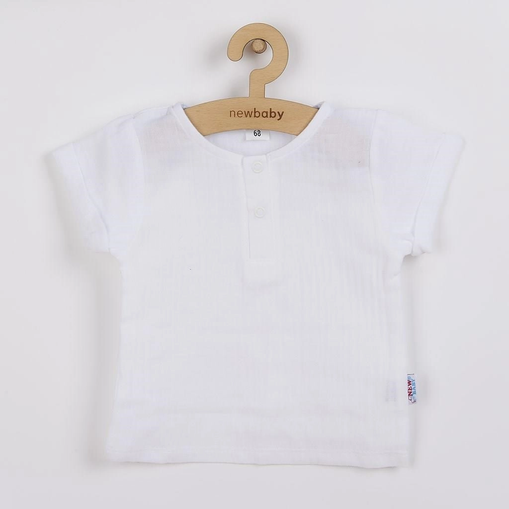 Lichte en ademende mousseline set voor baby’s van het merk New Baby, ideaal voor de zomer. Bestaat uit een T‑shirt met korte mouwen en shorts met een comfortabele taille. De stof van 100% katoen is zacht, ademend en prettig om te dragen, en tegelijk duurzaam en geschikt voor herhaald wassen.