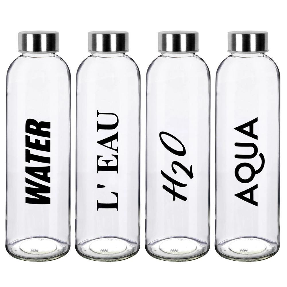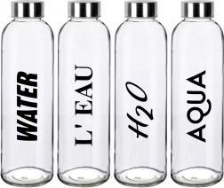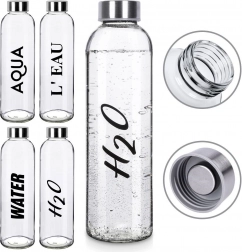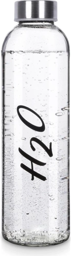 Stijlvolle glazen fles met een inhoud van 700 ml: een uitstekende keuze voor gezond en duurzaam drinken gedurende de hele dag. Het heldere, hoogwaardige glas is voorzien van een zwarte opdruk en een metalen dop met siliconen afdichting, die betrouwbare lekdichtheid biedt bij het dragen in een tas of rugzak.
