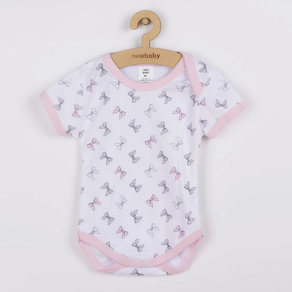 Deze 3-delige roze set NEW BABY Perfect Summer is ideaal voor warme dagen. De romper met korte mouwen is versierd met een kinderlijk motief en gekleurde bies langs de hals, mouwen en beentjes. De praktische drukknoopsluiting tussen de beentjes versnelt aankleden en verschonen. De short heeft in de taille een brede elastische boord en smallere boorden aan de pijpjes voor comfortabel dragen zonder knellen. De elastische haarband past zich goed aan het hoofdje aan en blijft op zijn plaats.
