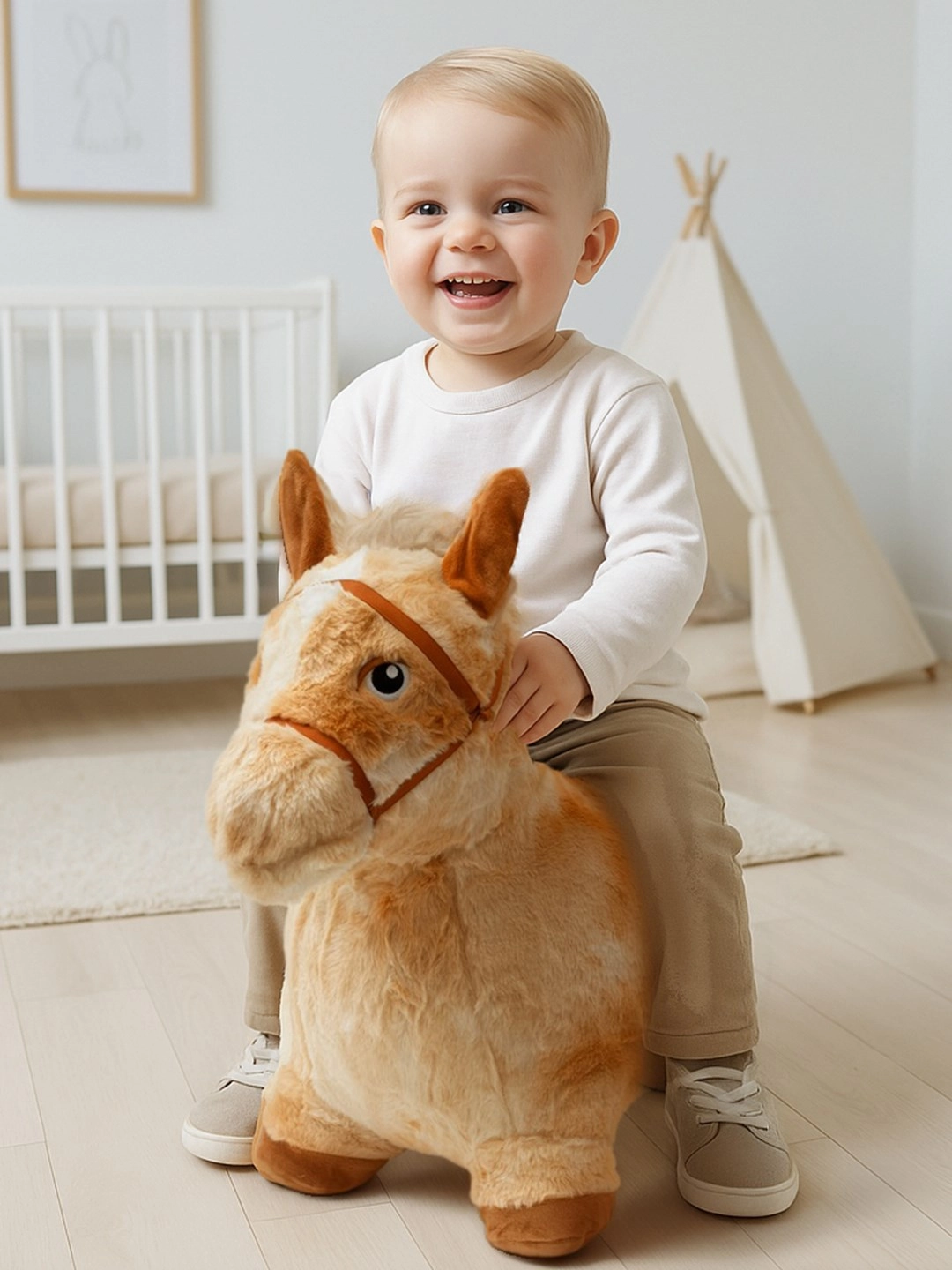 Het pluchen springpaard PlayTo is het ideale skippy-speelgoed voor kinderen die van beweging en dieren houden. De zachte, aangename pluche is antislip en zorgt voor een comfortabele zit en zekere grip aan de oren. De ingebouwde geluidsmodule tussen de oren geeft na een druk een realistisch paardengeluid, wat het spel versterkt en de fantasie prikkelt.