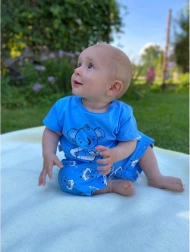 Schattige en comfortabele kinderzomerset pyjama uit de collectie New Baby Dream, gemaakt van een superzachte stof met een speels berenmotief. De set van 100% katoen bestaat uit een T‑shirt met korte mouwen en een short. Ze zijn zacht voor de kinderhuid, beperken de bewegingsvrijheid niet en zitten perfect dankzij de elastische tailleband. Ideaal om in te slapen of als lichte zomerkleding.