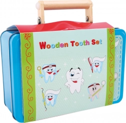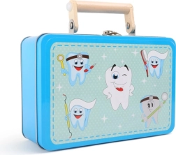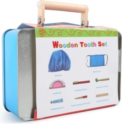 Tandartsenset voor kleine kinderen – houten doktersset in metalen doos