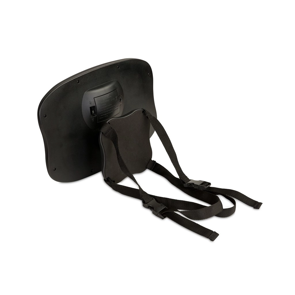 De geïntegreerde LED-achtergrondverlichting verbetert het zicht in het donker en bedien je gemakkelijk met de meegeleverde afstandsbediening. Het draaibare scharnier maakt snelle hoekverstelling mogelijk voor perfect zicht. Montage op de hoofdsteun is eenvoudig en stabiel.