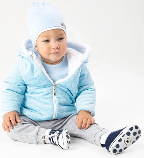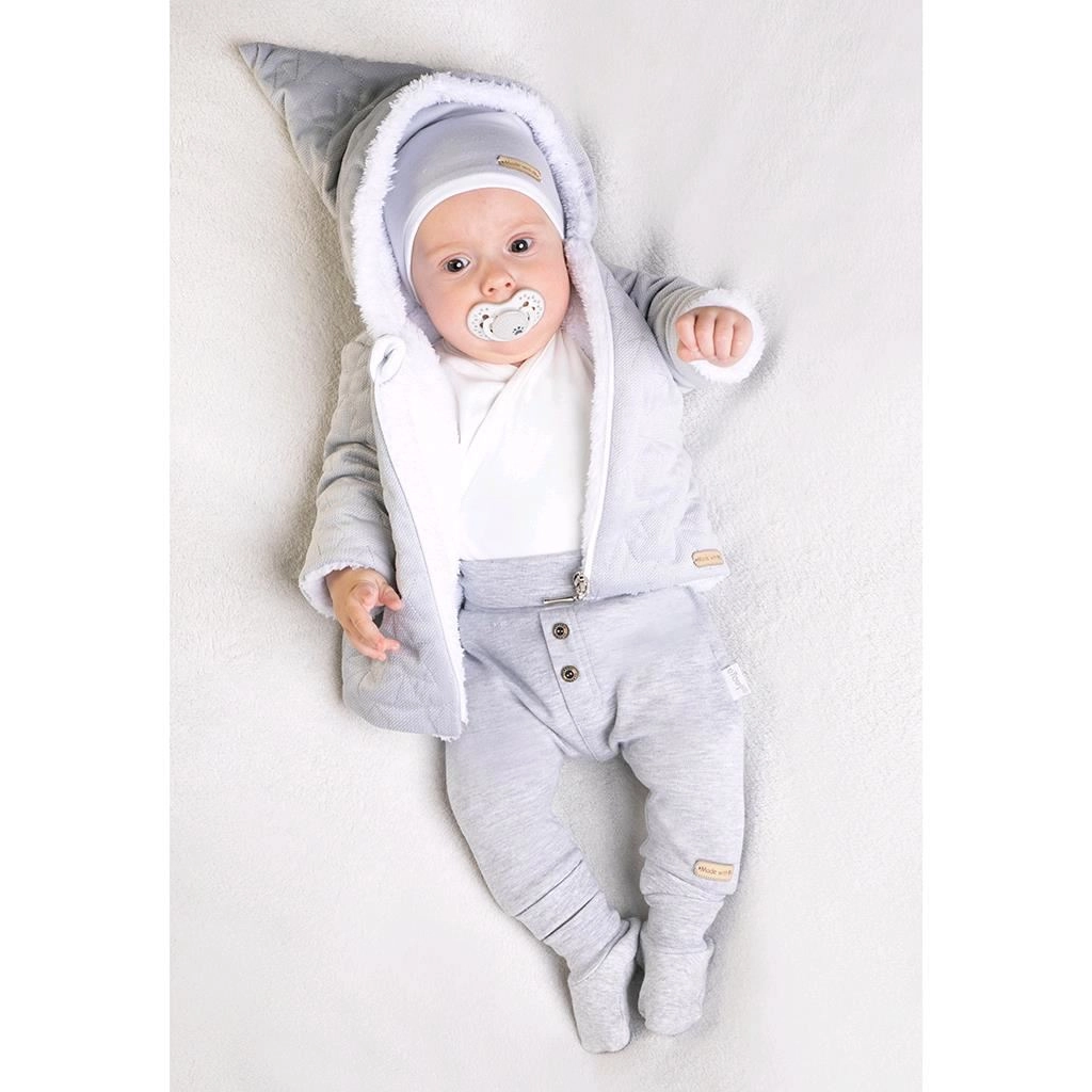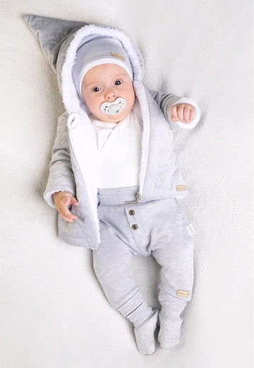 De set bevat een katoenen muts die zacht is voor de babyhuid en goed blijft zitten. De praktische rits over de volledige lengte vereenvoudigt aan- en uitkleden zonder onnodig draaien. De materialen behouden langdurig hun vorm en zachtheid, zodat het jasje ook na vaak dragen mooi blijft.