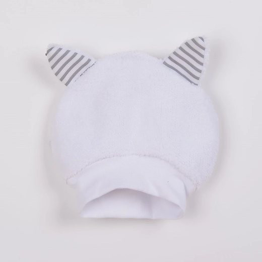 Stijlvolle en warme wintermuts voor baby’s uit de collectie New Baby Snowy met schattige oortjes. Dankzij de dubbele laag wellsoft en de katoenen voering is hij uitzonderlijk zacht, aangenaam om aan te raken en houdt hij de warmte uitstekend vast. Moderne gestreepte oortjes geven de outfit een originele look.