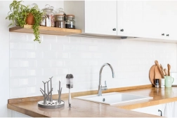 De geïntegreerde zuignap hecht de borstel stevig op gladde oppervlakken, wat het drogen vergemakkelijkt en het werkblad schoon houdt.