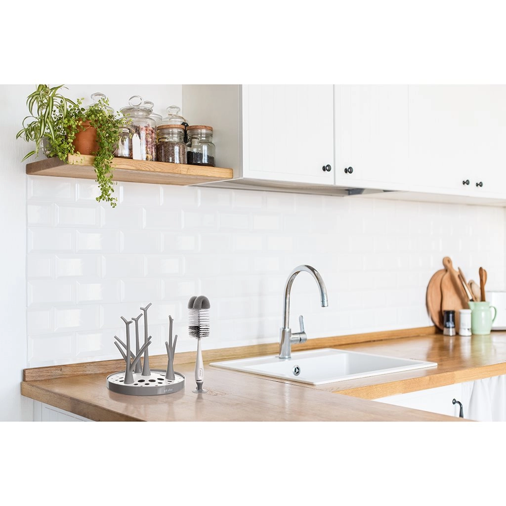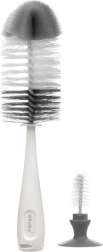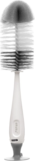De grote borstel met borstelharen en een zachte sponspunt verwijdert effectief melkresten en vuil, zelfs van de bodem en randen van flessen, zonder te krassen.