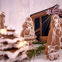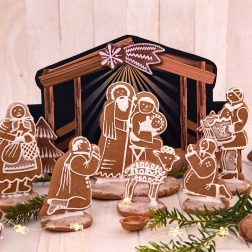 Inclusief gekleurde staldecors, waardoor jouw zelfgemaakte peperkoek- of koekjes-kerststal extra mooi uitkomt.