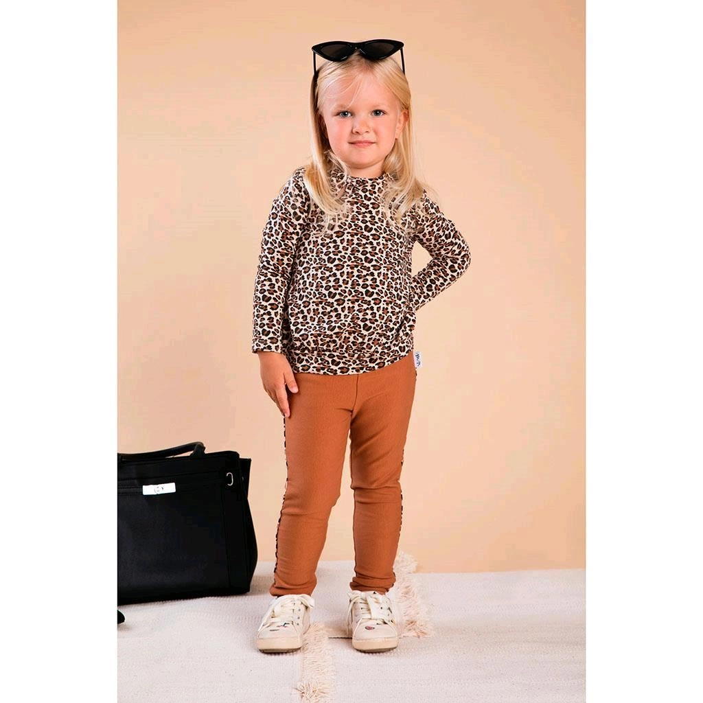 Het baby T-shirt Nicol Mia is ontworpen met oog voor comfort en de gevoelige huid van kleintjes. De zachte 100% katoen is ademend en huidvriendelijk, terwijl de bredere onderzoom het T-shirt een mooie vorm geeft en goed laat zitten. Het luipaardvachtmotief met een subtiele strik onder de hals geeft de outfit een licht elegante uitstraling.