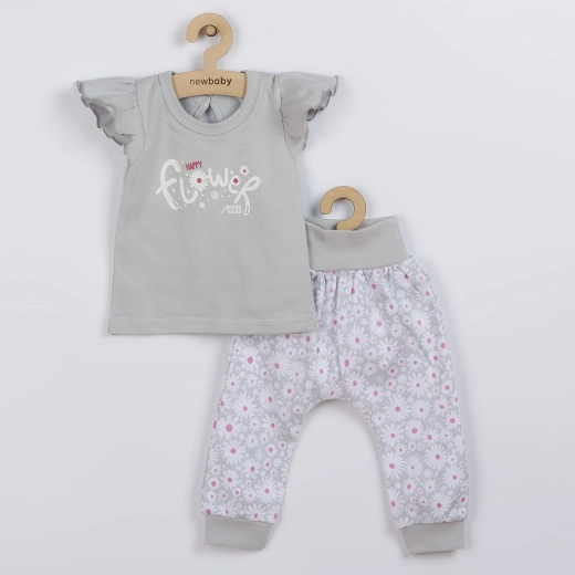 Tweedelige babykatoen set New Baby Happy Flower grijs