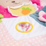 Het zachte speelkleed met babygym Baby Mix in de vorm van een bloem met konijntjesmotief biedt je baby een veilige en knusse plek om te ontdekken. Het ondersteunt de ontwikkeling van de zintuigen, fijne motoriek en oog-handcoördinatie dankzij knisperdelen, een belletje, een piepertje en een spiegeltje. De zachte suède-achtige bovenkant zorgt voor comfort bij spelen op de buik en rug, en de afneembare speeltjes kunnen ook los gebruikt worden.