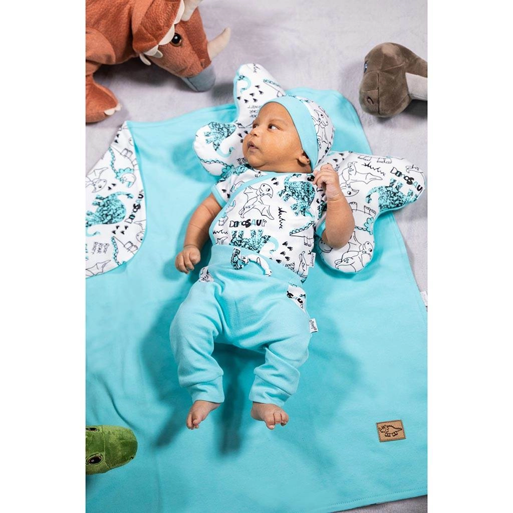 Dankzij de sjaalachtige snit oogt hij modern en beschermt hij tegelijk het hoofdje tegen tocht. De dinosaurusprint zal kleine liefhebbers van vrolijke motieven aanspreken en maakt elke outfit compleet, zowel voor wandelingen als thuis.