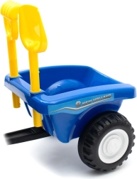 Inclusief afneembare aanhanger met gereedschap – schep en hark – die creatief spel en de ontwikkeling van fijne en grove motoriek ondersteunt. Interactieve elementen zoals de claxon en motorgeluiden onder het stuur vergroten de rijbeleving. De looptractor is gemaakt van hoogwaardig kunststof met metalen onderdelen en metalen wielassen voor een lange levensduur.