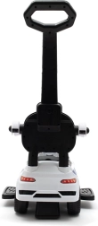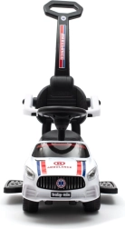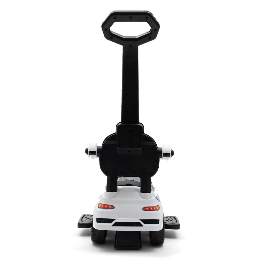 Ouders waarderen de praktische duwstang voor stuurcontrole, de afneembare armleuningen en de inklapbare voetensteunen voor jongere kinderen. Zodra de kleine bestuurder groter wordt, kunnen de onderdelen eenvoudig verwijderd worden en kan het autootje als klassieke loopfiets worden gebruikt. Onder het zadel bevindt zich een opbergvak voor kleine schatten.