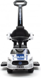 De BABY MIX politieloopauto in het wit combineert een fraai design met functionaliteit. Draaibare voorwielen zorgen voor soepel manoeuvreren, de gevormde zitting en rugleuning voor comfortabel rijden en het geluidspanel geeft het spel een realistische dimensie. Dankzij de hoge duwstang en zijsteunen houden ouders de eerste ritten van het kind goed onder controle.