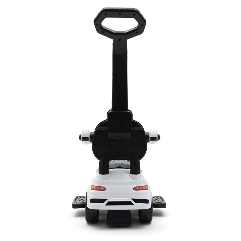 Wanneer de begeleidingsmodus niet meer nodig is, verwijder je eenvoudig de duwstang, armsteunen en voetsteunen en wordt de loopauto meteen een klassieke foot-to-floor wagen. Een speciale kantelbeveiliging aan de achterzijde verhoogt de veiligheid en onder de zitting zit opbergruimte voor schatten. Kwalitatieve en duurzame materialen garanderen een lange levensduur.
