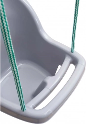 Deze grijze hangschommel biedt kinderen veilig en comfortabel schommelen dankzij de hoge rugleuning en het voorste veiligheidsdeel. De constructie van hoogwaardige kunststof is weerbestendig, eenvoudig te reinigen en behoudt langdurig zijn kleur. Dankzij de in lengte verstelbare touwen pas je hem gemakkelijk aan verschillende ophanghoogtes aan, zowel binnen als buiten.