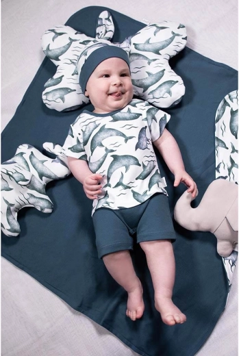 Deze baby-katoenen sjaalmuts NICOL Dolphin combineert comfort, functionaliteit en een schattig design. Het natuurlijke materiaal is zacht voor de gevoelige babyhuid, ademt goed en is ideaal voor dagelijks dragen, zowel thuis als buiten.