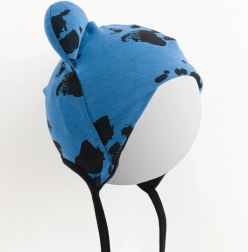 Schattig babymutsje met oortjes van het Tsjechische merk NEW BABY, gemaakt van hoogwaardige katoen met een vleugje elastaan. All-over pootafdrukken, met praktische vetersluiting en een zachte katoenen voering voor extra comfort en warmte. Ideaal voor lente en herfst voor zowel comfort als stijl van je kleintje.