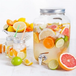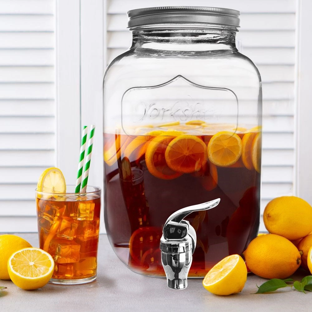 Dankzij de inhoud van 4 liter bereid je eenvoudig grotere hoeveelheden homemade limonade, water met fruit of ijsthee. De brede opening maakt vullen en reinigen comfortabel, en het metalen kraantje zorgt voor gelijkmatig en schoon schenken zonder morsen. De dispenser is gemaakt van hoogwaardig dik glas, dat veilig is voor de gezondheid en smaakneutraal.