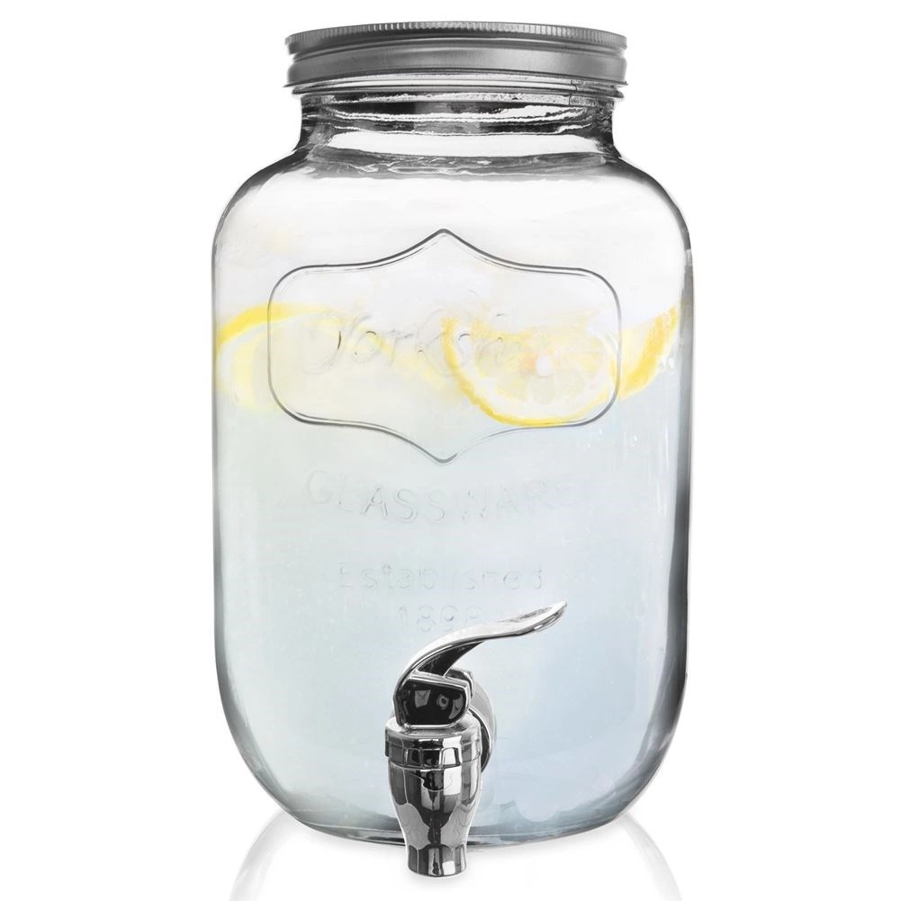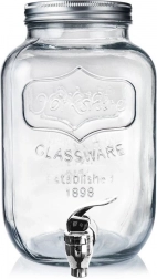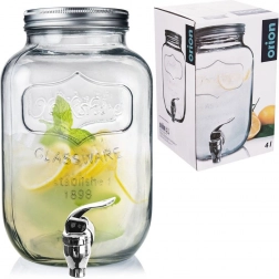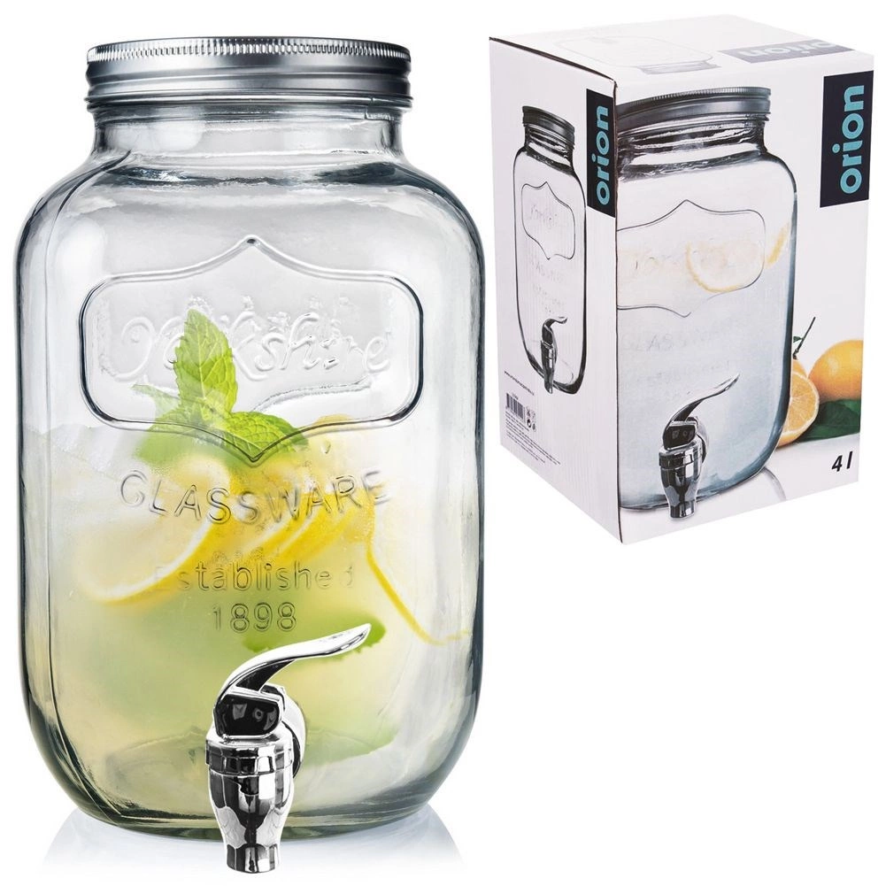 Stijlvolle glazen drankdispenser van 4 l met metalen deksel en praktisch kraantje voor comfortabel tappen. Ideaal voor limonade, fruitwater, punch of iced tea. Heeft een brede opening voor eenvoudig vullen en reinigen, veilige materialen geschikt voor contact met voedsel en een afsluitbaar deksel dat de drank tegen insecten beschermt.