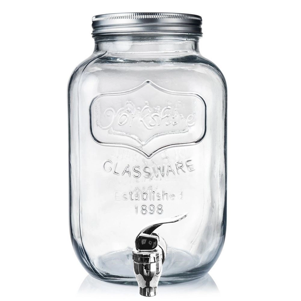 De elegante glazen dispenser met kraantje is de perfecte keuze voor het serveren van verfrissende drankjes bij tuinfeesten, familiemomenten en in restaurants of bars. Het transparante glas met reliëfafwerking laat kleurrijke fruitplakjes en ijsblokjes mooi uitkomen, terwijl het metalen schroefdeksel de drank schoon en beschermd houdt.