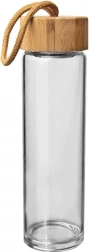 Deze stijlvolle fles combineert een strak design met dagelijks gebruiksgemak. Borosilicaatglas is licht, sterk en bestand tegen thermische schokken, zodat je kunt genieten van water, sap, limonade en hete thee. Het natuurlijke bamboe deksel met stevige lus maakt dragen eenvoudig en geeft de fles een ecologische uitstraling.