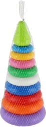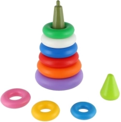 Elke ring heeft een andere kleur, wat helpt bij het herkennen van kleuren en grote differentiatie. Kinderen zullen gefascineerd zijn door de heldere kleuren en zullen veel plezier hebben bij het steeds opnieuw stapelen en demonteren van de piramide.