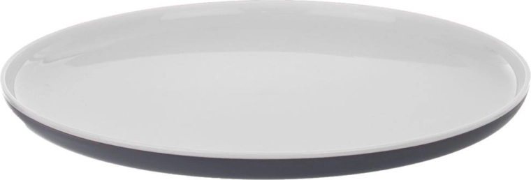 Het praktische ondiepe bord KEMP combineert een moderne look met hoge duurzaamheid. Mat grijs aan de buitenkant en glanzend wit aan de binnenkant zorgen voor een elegante uitstraling op elke tafel, terwijl het bord zeer licht is en geschikt voor onderweg. Het kan in de vaatwasser en in de magnetron tot 95 °C.