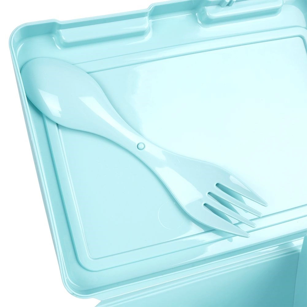 Praktische lunchbox met een inhoud van 1 liter, twee vakken, een geïntegreerde 2-in-1 spork en stevige clips voor een veilige sluiting. Licht, duurzaam en ideaal voor broodjes, salades en snacks voor school, werk en onderweg.