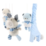 Schattige textielen figuurtjes in zachte kleuren ondersteunen het visuele waarnemen en trekken de aandacht van de baby tijdens het draaien.