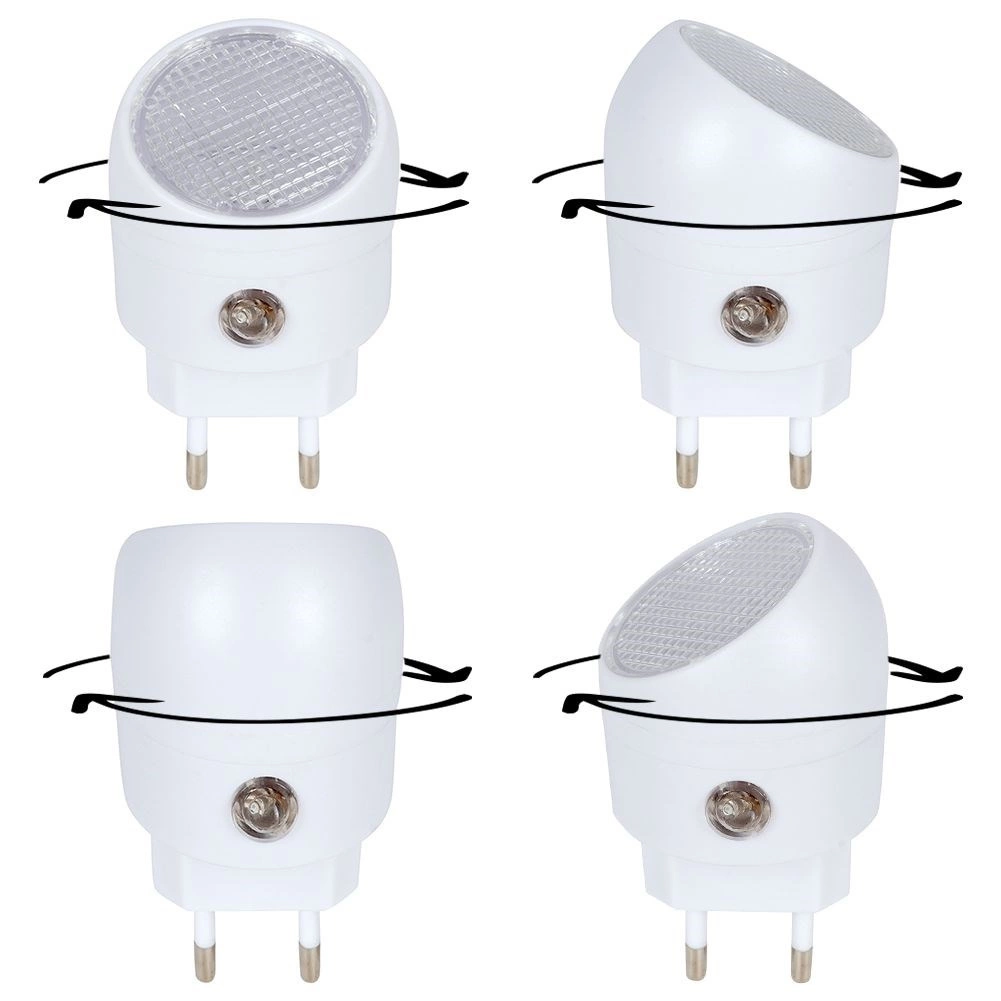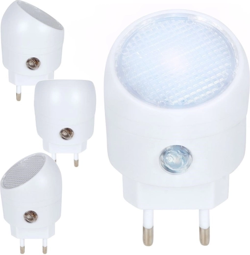 Compact nachtelijk LED-licht voor in het stopcontact met een schemersensor dat automatisch aangaat in het donker en overdag uitgaat. Dankzij het lage verbruik van 1 W en voeding direct uit het 220 V stopcontact is het ideaal voor de kinderkamer, gang of slaapkamer. De 360° draaibare kop laat je het zachte licht precies richten waar je het nodig hebt. De smaakvolle witte afwerking van hoogwaardige kunststof past in elk interieur.