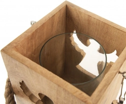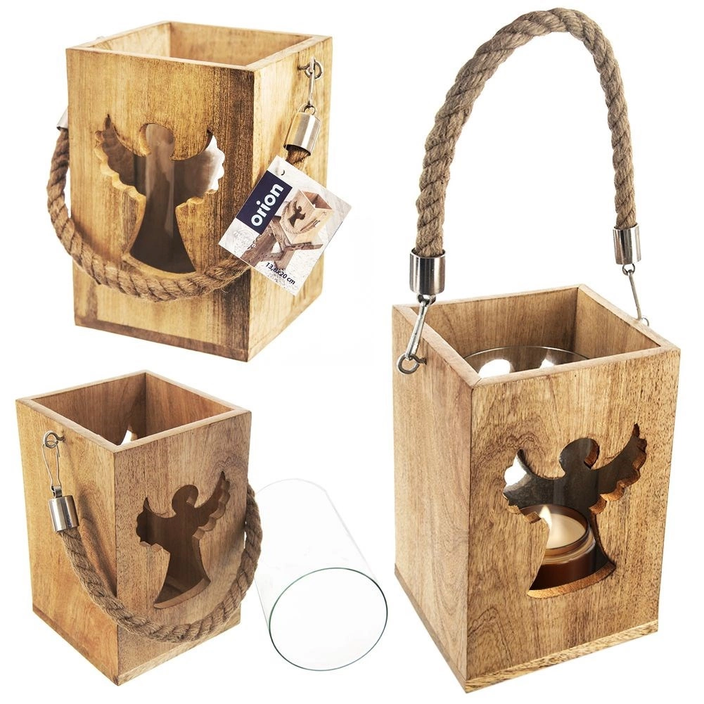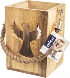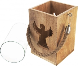 Stijlvolle houten lantaarn met engelenmotief en uitneembare glazen inzet voor veilig en sfeervol kaarslicht binnenshuis en buiten. Dankzij de stevige touwgreep verplaats of hang je hem gemakkelijk op. Natuurlijk hout en het engel-uitsnijwerk zorgen voor een knusse sfeer en prachtige lichteffecten.