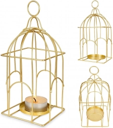 Stijlvolle metalen lantaarn in de vorm van een kooi brengt elegante, sfeervolle verlichting in elk interieur. Dankzij de stevige metalen constructie in gouden afwerking en het praktische oog om te dragen of op te hangen is hij ideaal voor waxinelichtjes en kaarsen tot een diameter van 7,5 cm. Het minimalistische LOFT/industriële design past perfect in woonkamer, slaapkamer en eetkamer.