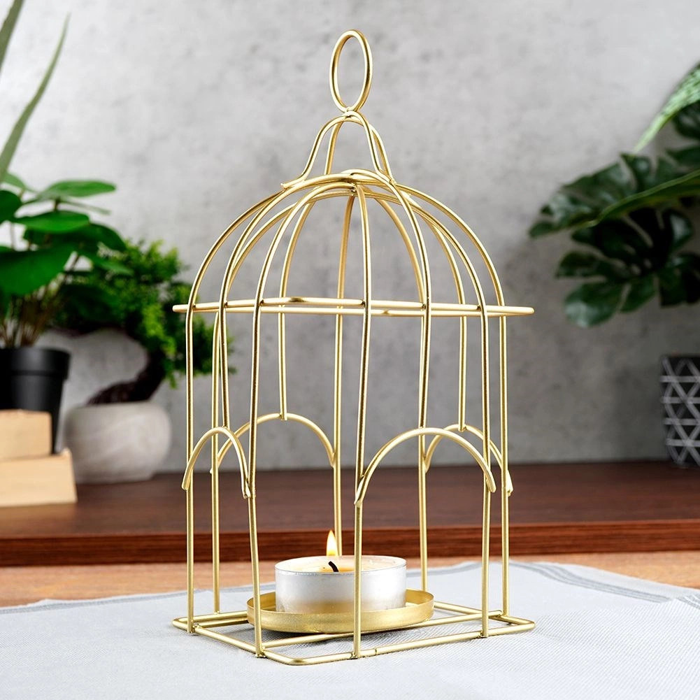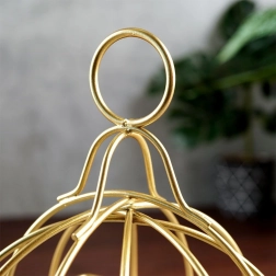 Elegante lantaarn geïnspireerd op de vorm van een kooi, creëert een aangename sfeer met zacht licht en fungeert tegelijk als een opvallende decoratie. Het duurzame metalen frame met gouden afwerking zorgt voor een lange levensduur en een tijdloze uitstraling die tot zijn recht komt op tafel, dressoir of plank.