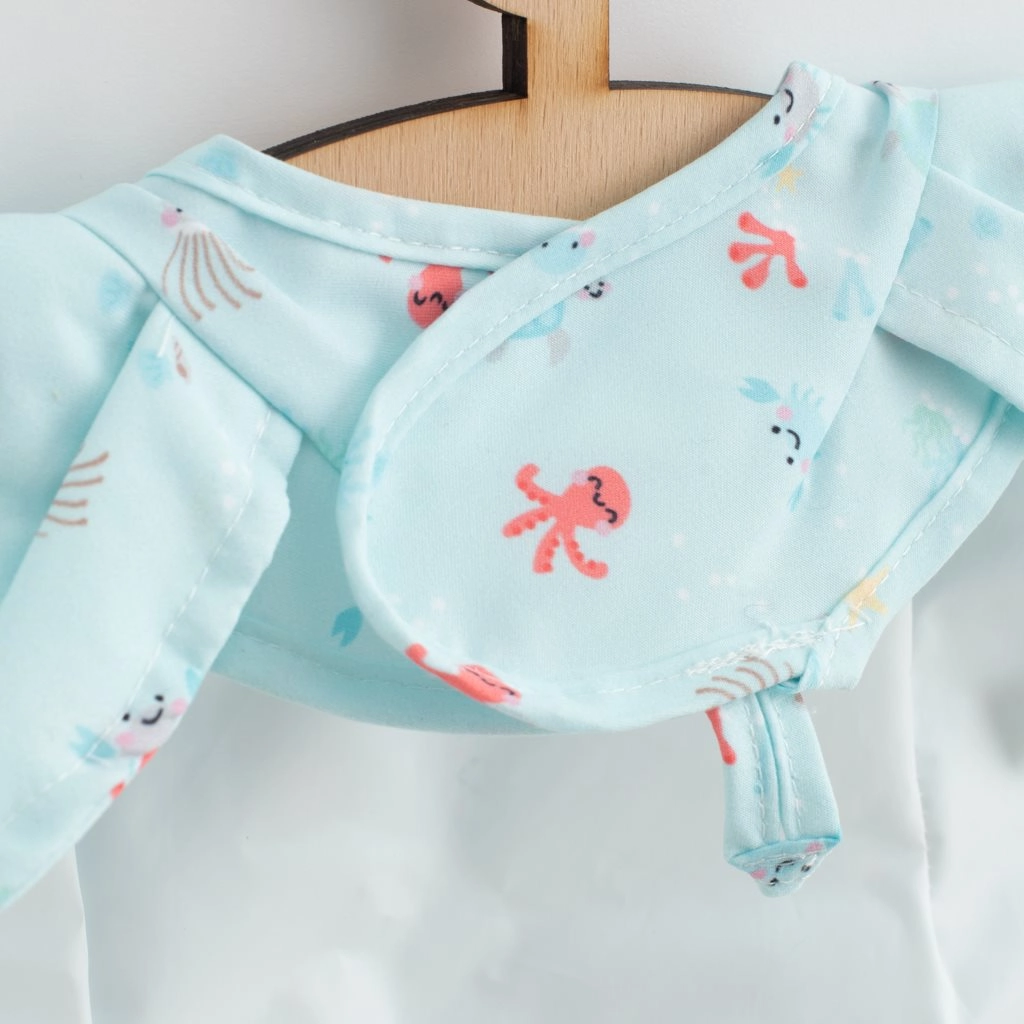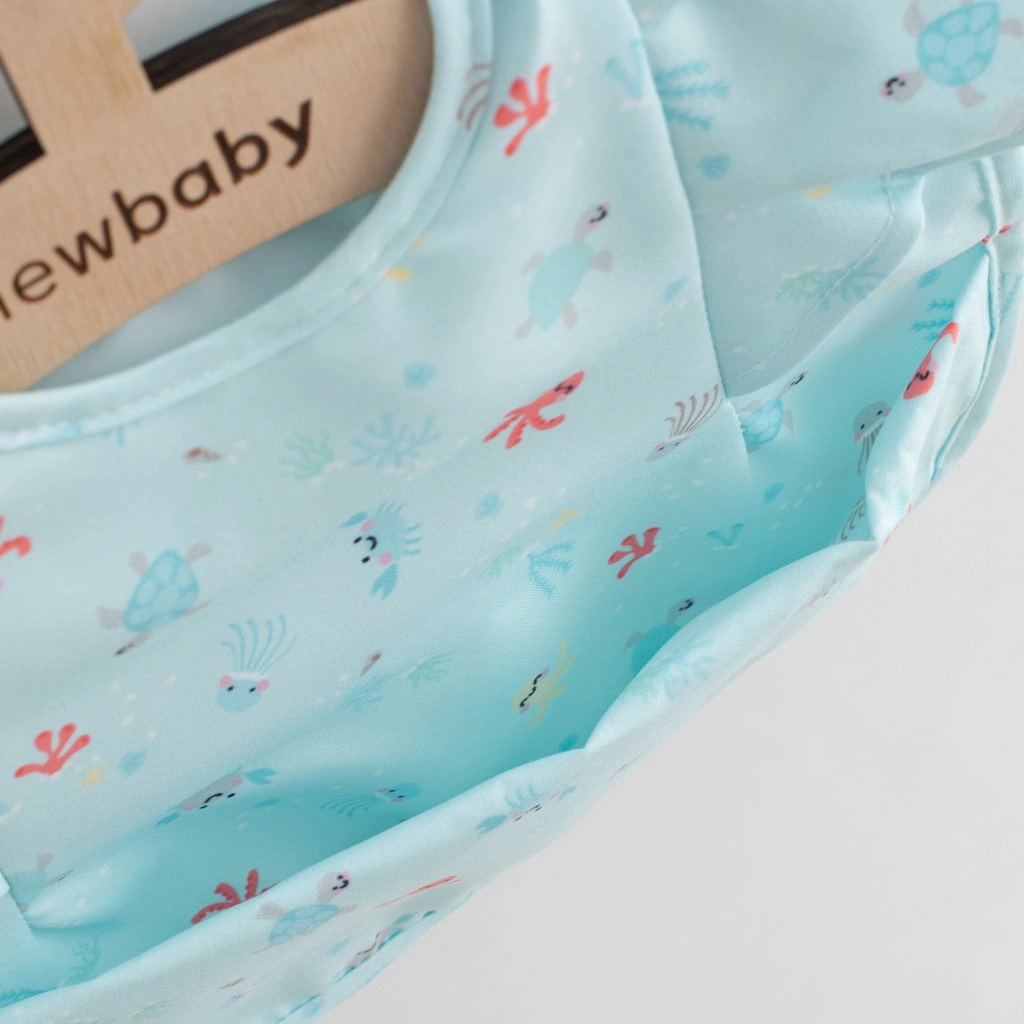 De luxe New Baby slab met ruches combineert een schattig design met praktische afwerking. Het lichte, zachte materiaal voelt prettig aan, terwijl de waterdichte onderlaag betrouwbaar doorlekken en het vuil maken van kleding voorkomt. Dankzij de klittenband gaat het snel en veilig dicht.