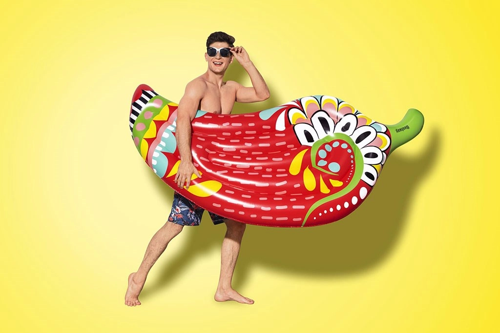 Het stijlvolle opblaasbare ligbed Bestway Peper brengt zomerse relax en een speelse sfeer. Het kleurrijke motief geïnspireerd op de Azteekse cultuur in pepervorm trekt meteen de aandacht, terwijl de doordachte constructie zorgt voor comfortabel liggen en uitstekende drijfkracht op het water. Dankzij de 2 luchtkamers en de robuste I-balkconstructie is het ligbed stabiel en duurzaam.