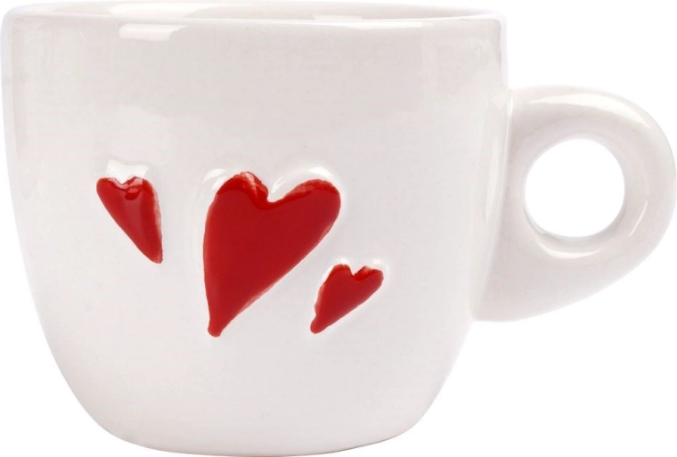 Drie reliëf rode hartjes geven je espressorituueel een persoonlijk charmeaccent en maken elke tafel gezelliger.