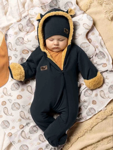 De winter-baby-overal Nicol Miki in grafiet is een ideale keuze voor herfst en winter. De superfijne Wellsoft-voering houdt je baby warm, terwijl de elastische buitenstof met een vleugje elastaan voor comfortabele bewegingsvrijheid zorgt. De capuchon met oortjes geeft een schattige look en dankzij de zijrits is de overal zeer gemakkelijk aan en uit te trekken.