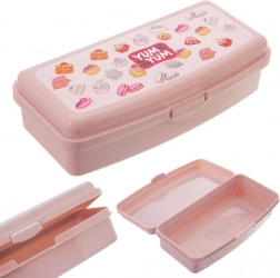 De box is gemaakt van hoogwaardig, voedselveilig kunststof in de kleur roze. De stevige clip zorgt voor een betrouwbare sluiting en langere versheid van voedingsmiddelen. Het design met het “YUM YUM”-motief geeft je lunch een speelse touch en helpt kinderen hun box gemakkelijk te onderscheiden.