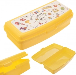 Praktische lunchbox met een inhoud van 500 ml in een moderne gele kleur, ideaal voor canapés, snacks en kleine spulletjes. Hij heeft een veilig klikdeksel met één clip, is licht, makkelijk schoon te maken en dankzij het schoolmotief herkennen kinderen hem direct. Geschikt voor school, uitstapjes en reizen.