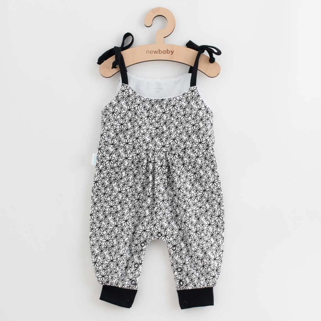 Schattige zomerse 2-delige set voor baby’s van het Tsjechische merk NEW BABY Be Happy, die comfort, hoogwaardige 100% katoen en praktische details combineert. De set bestaat uit een T-shirt met korte mouwen met de print “be happy” en lichte tuinbroekjes met bloemenprint, bredere boorden en striksluitingen op de schouderbandjes.