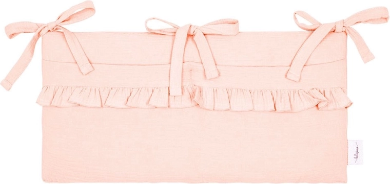 Praktische bedorganizer van zachte mousseline van het merk BELISIMA houdt alle babybenodigdheden overzichtelijk binnen handbereik. Dankzij het formaat 30×60 cm, de universele pasteltinten en de stevig doorgestikte striklinten past hij perfect in elke kinderkamer. Gemaakt van 100% katoen met een anti-allergische vulling voor veiligheid en comfort.
