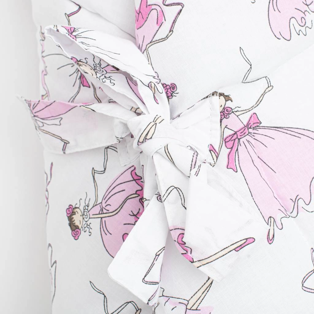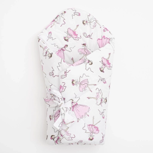 Het ontwerp met ballerinamotief oogt teder en rustgevend. Dankzij de striklint-sluiting kan de inbakerdoek eenvoudig worden aangepast aan de grootte van de baby. De hypoallergene vulling zorgt voor een schone en gezonde omgeving zonder micro-organismen en schimmels.