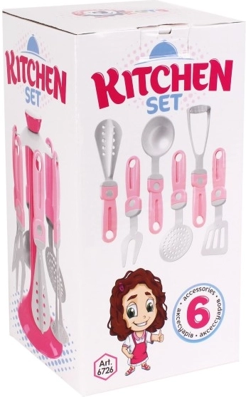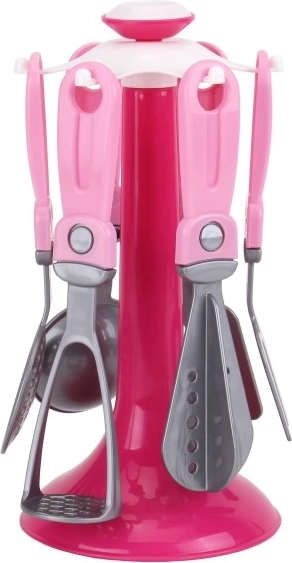 Als je van design houdt, mag deze originele houder met keukengerei voor kleine kokkinnen niet in huis ontbreken. Een onmisbare accessoire voor alle kleine koks en helpers in het huishouden of voor meisjes die graag iets lekkers willen koken voor hun poppen. De set bevat 6 stuks gerei samen met een praktische houder, zodat je alles bij de hand hebt. Alles is gemaakt van hoogwaardige en veilige kunststof. Geschikt voor kinderen vanaf 3 jaar.